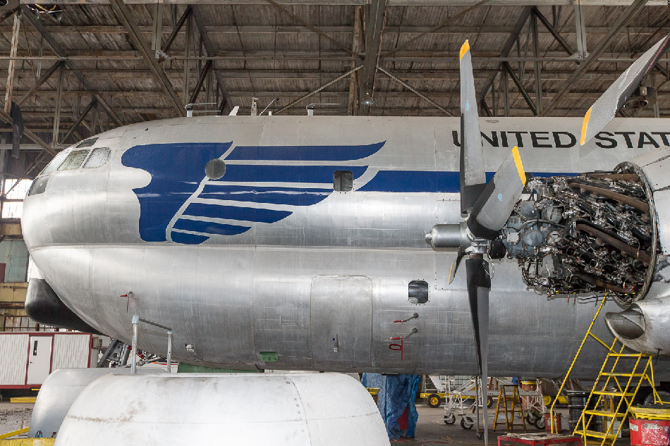 C-97G 52-2718“拯救的天使”号(机身编号16749)运输机正在弗洛伊德·贝内特纪念机场进行维护。