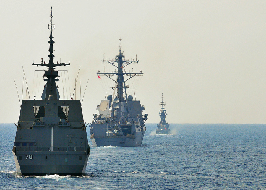 2010年7月13日,美国海军DDG-93鈡云号导弹驱逐舰与新加坡海军可畏级FFG-70隐身护卫舰,在南中国海军举行克拉2010联合军演。