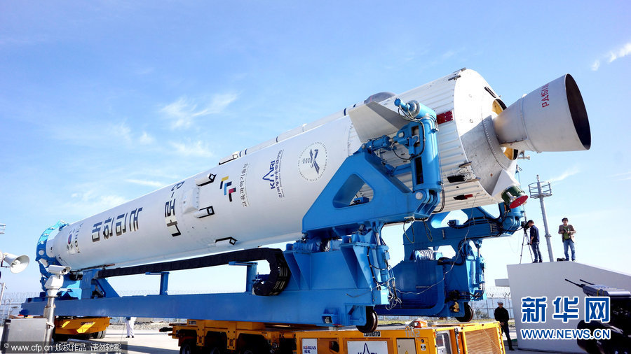 韩国首枚运载火箭转移至发射台并垂直固定