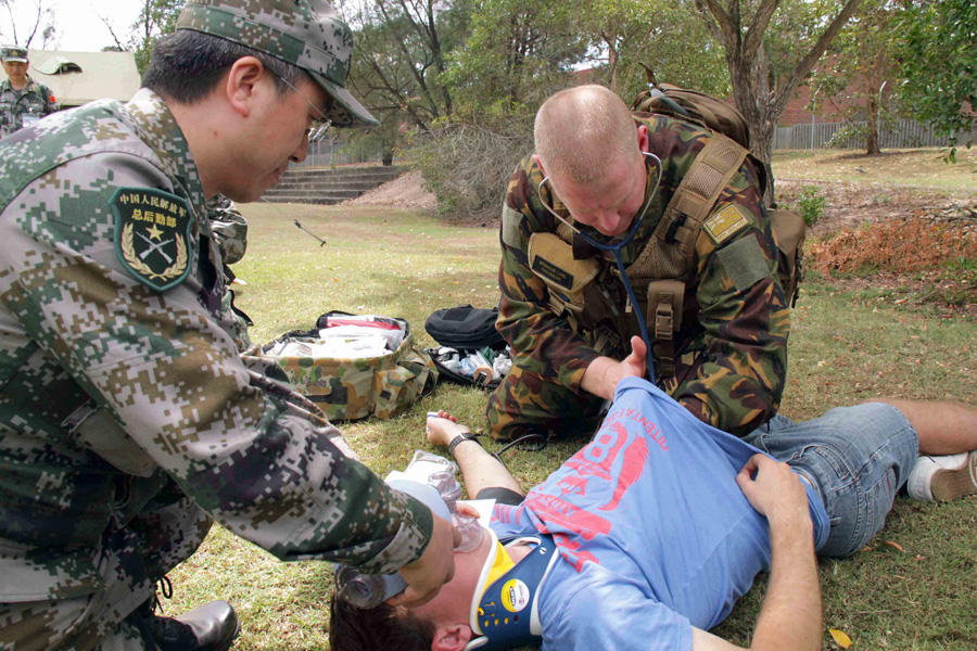 开设野战医疗所、分类后送伤员、进行抗休克治疗、开展剖腹探查手术……在顺利完成实兵演习任务后,“合作精神—2012”中澳新三方人道主义救援减灾联合演练31日在澳大利亚加里玻利军营落下帷幕。