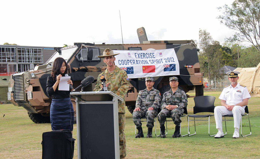 10月31日下午,在澳大利亚加里玻利军营举行的“合作精神—2012”中澳新三边人道主义救援减灾联合演练闭幕式上,澳大利亚军方观摩团团长致辞。新华社记者李宣良摄