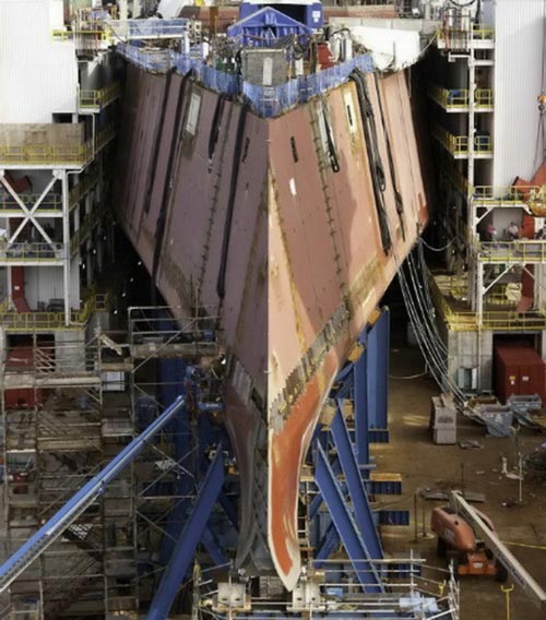 美国海军未来战舰DDG1000舰艏已经建造成形