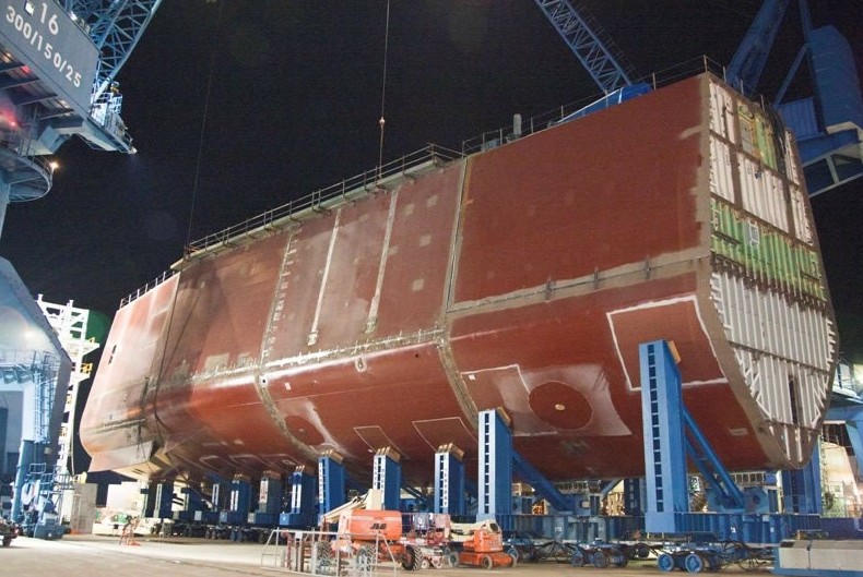 已经建成的DDG-1000驱逐舰船体分段