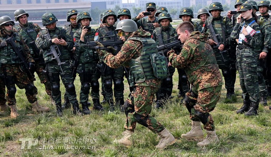 训练间隙,俄军特战队员介绍战斗经验。