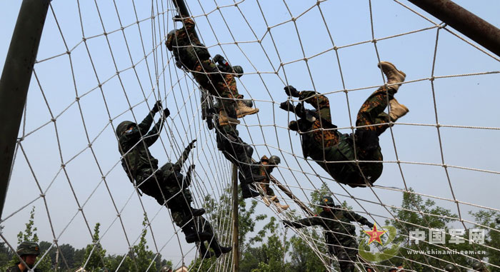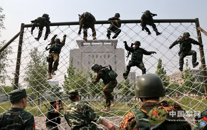 图为中俄两国参训特战队员翻越网墙。解放军报记者