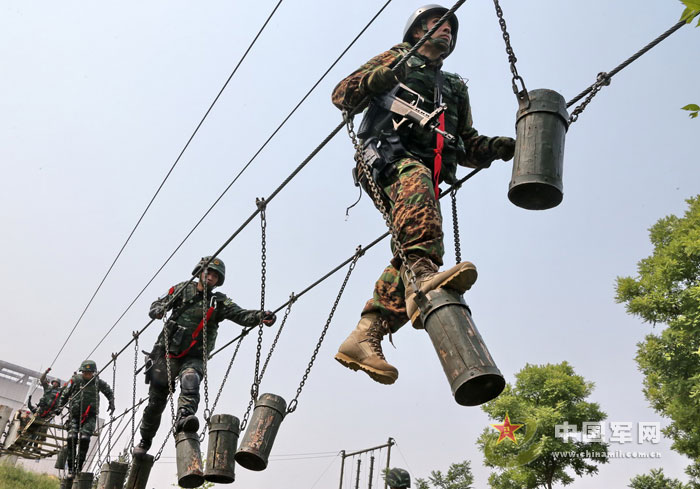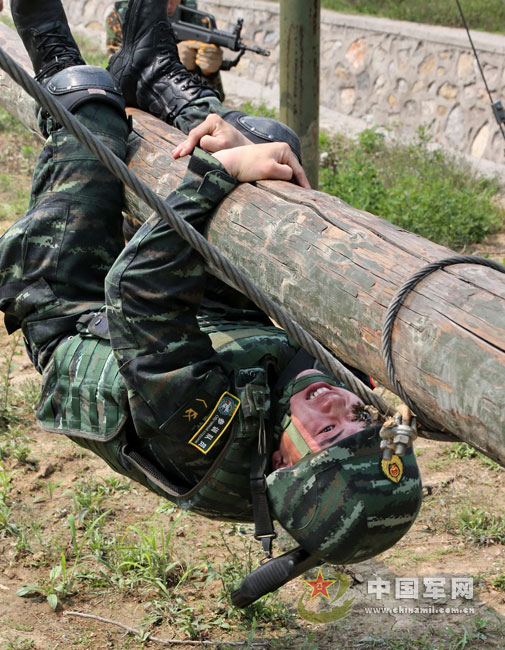 图为中俄两国参训特战队员训练过悬索的情景。解放军报记者