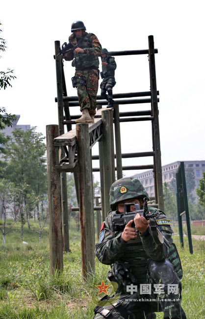 图为中俄两国参训特战队员训练中的情景。解放军报记者