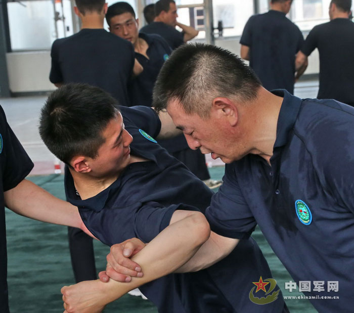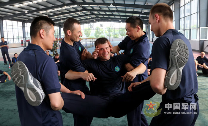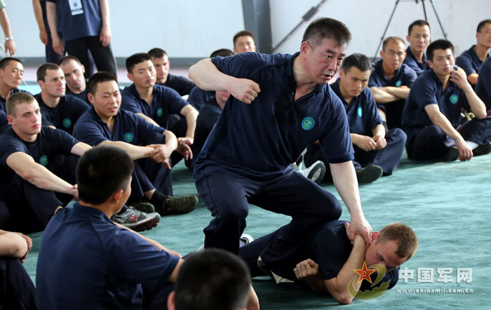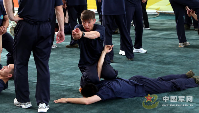 图为两国官兵现场练习的情景。 解放军报记者乔天富摄