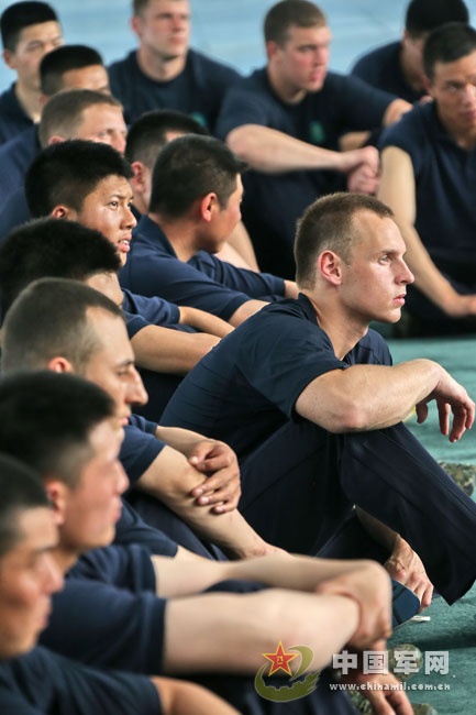 图为两国官兵现场学习的情景。 解放军报记者乔天富摄