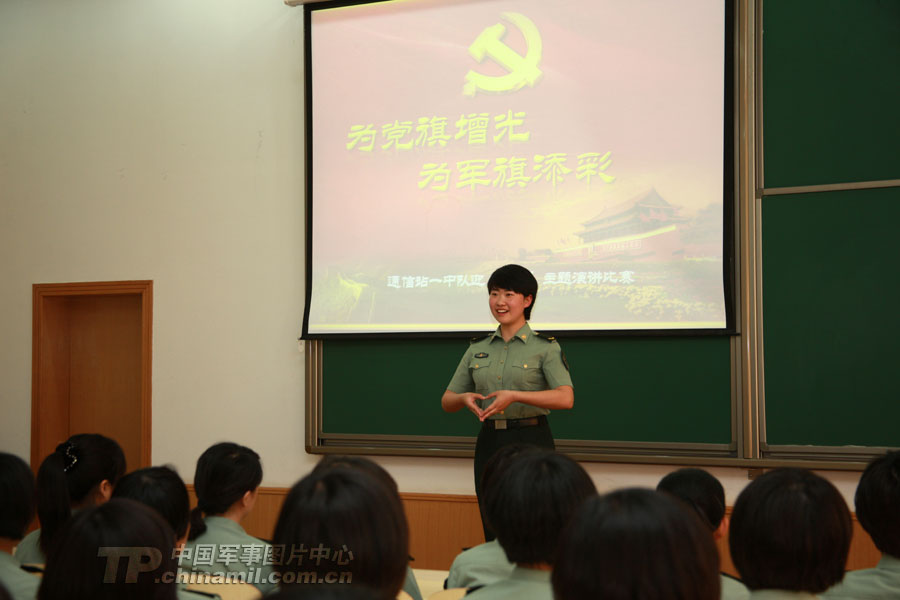 迎七一,抒感怀;颂党恩,跟党走。图为新兵党员刘珈宁在演讲比赛中的精彩瞬间。