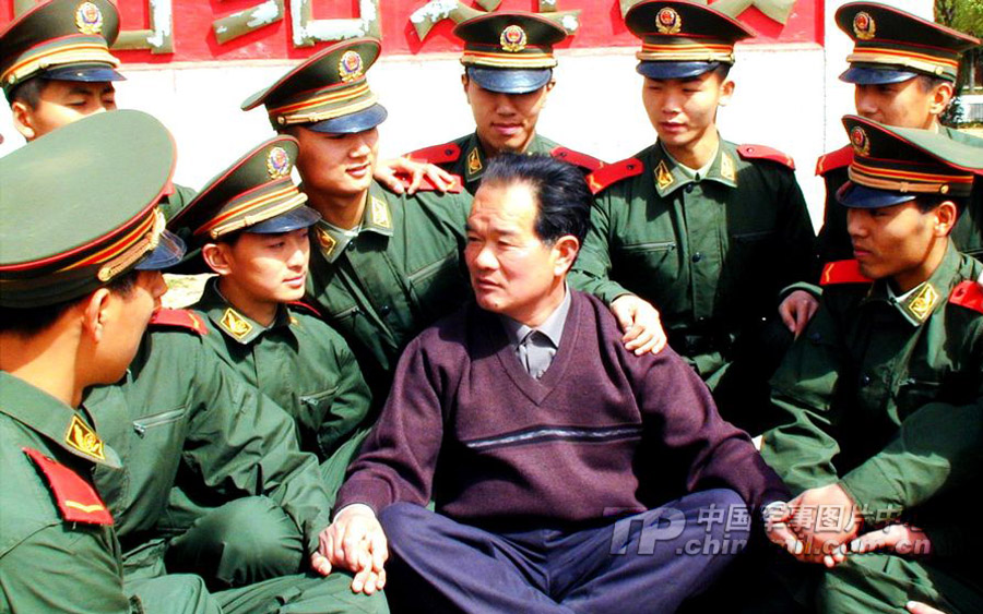2002年4月8日,江杏林来到天安门国旗护卫队新兵训练基地,看望10多位浙江籍国旗卫士,并和新兵们探讨人生观、价值观。
