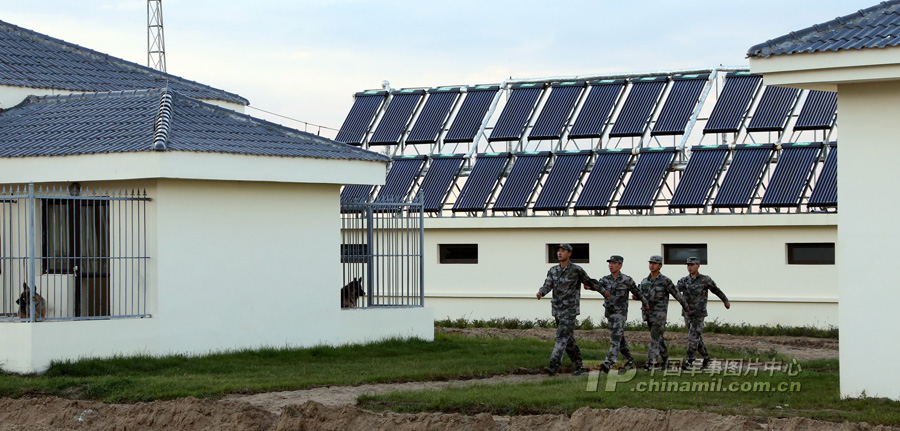 9月14日,记者在驻黑瞎子岛某边防连看到,新建营区装备着太阳能设施。战士们告诉记者:刚登岛时一个月洗不上一次澡,现在能天天洗澡,随时能用上热水。记者乔天富 摄