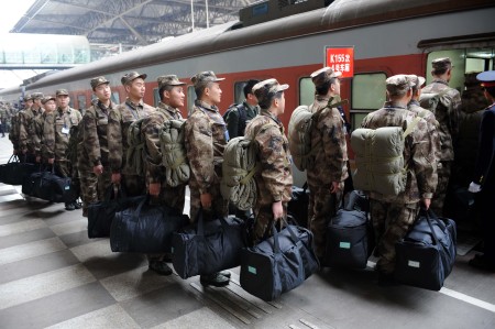 12月10日,来自江苏南京、南通、泰州、盐城4市的新战士从南京火车站登车启程,准备分赴部队服役。