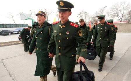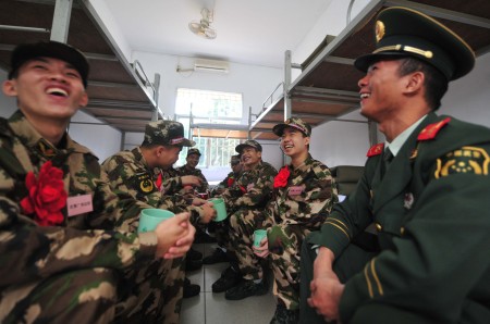 12月10日,来自南京、南通、泰州、盐城4市的新兵在2012年江苏省暨南京市欢送新兵入伍仪式上。
