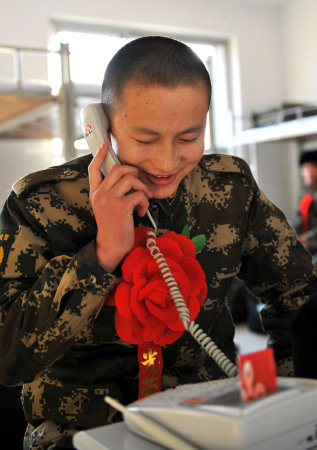 12月10日,内蒙古公安边防总队新战士、来自鄂尔多斯市杭锦旗的伊德日在到达驻地后给家人打电话报平安。