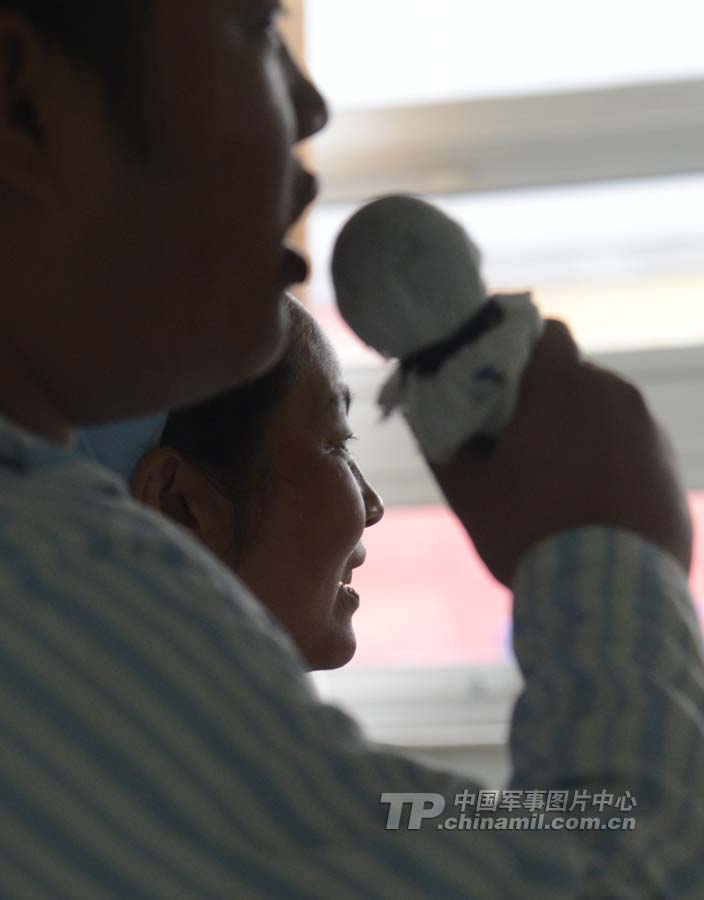 患者的歌声让红霞脸上荡起欣慰的笑。记者冯凯旋摄