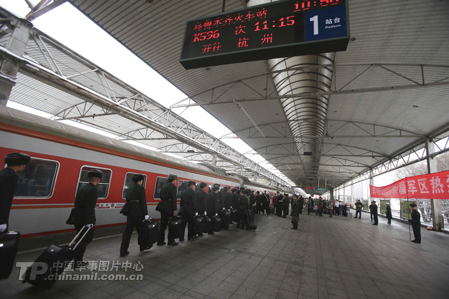 11月22日,首批退伍老兵开始陆续登车。特约记者李翔 摄