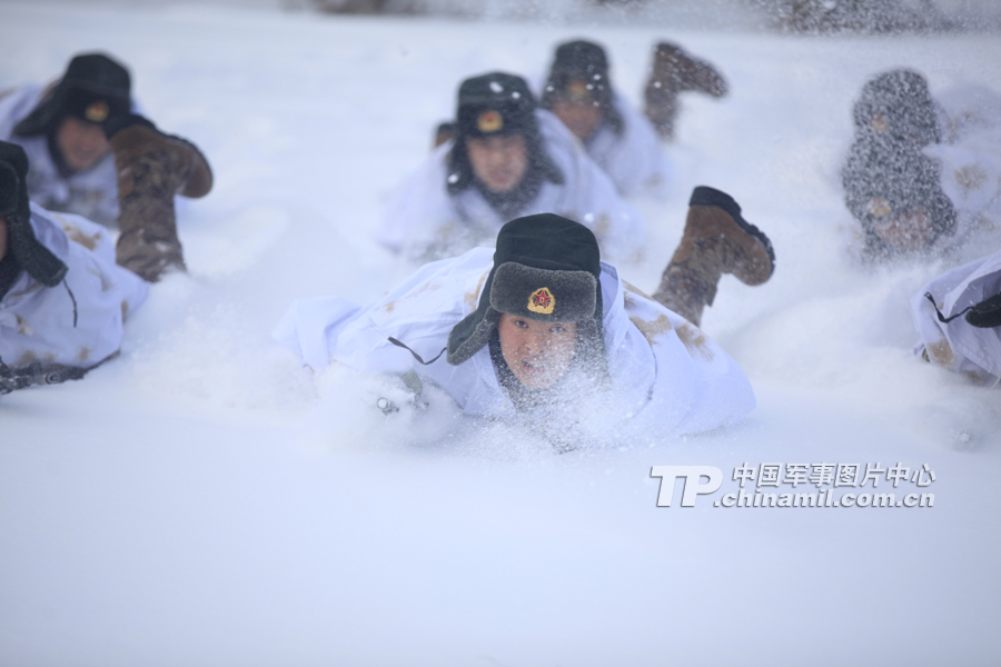 12月19日,黑龙江省军区某边防团新战士在茫茫雪野进行战术训练。特约通讯员魏建顺摄
