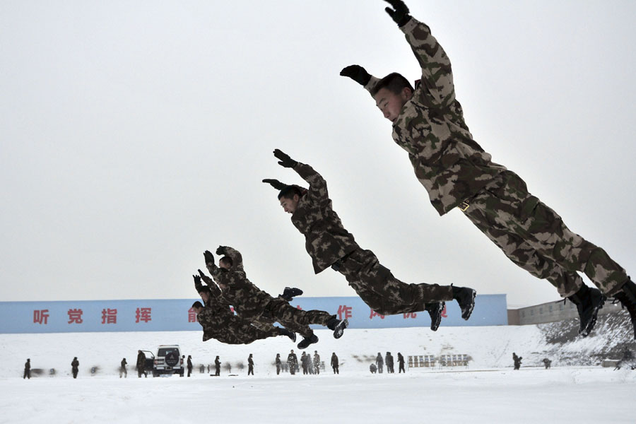 当日,武警新疆边防总队训练基地冬季特战技能大练兵活动拉开帷幕。据介绍,此训练基地地处新疆天山北麓,冬季平均气温在-15℃左右,最冷的时候近-40℃。基地中百余名特战队员将在超低温环境下接受和挑战各类超强度负荷特种训练及耐寒性适应训练。此次活动计划持续3个月。
