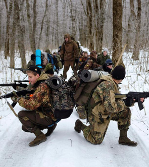 俄学生军训扛真枪野外生存