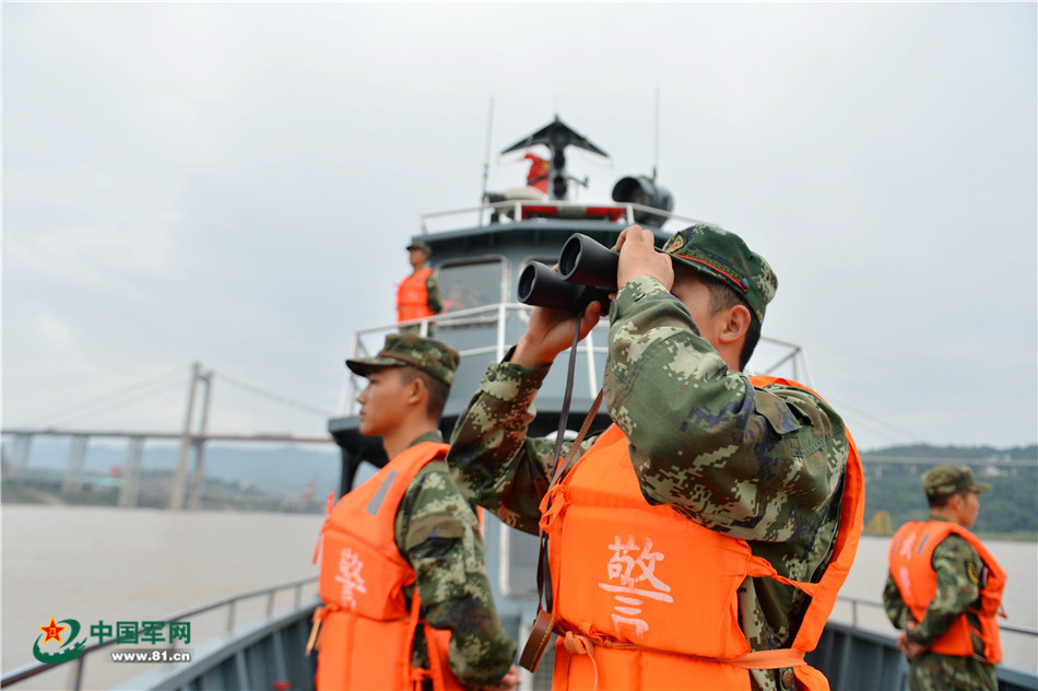 武警重庆总队船艇支队的官兵在长江重庆段水域巡逻。曹峰 摄