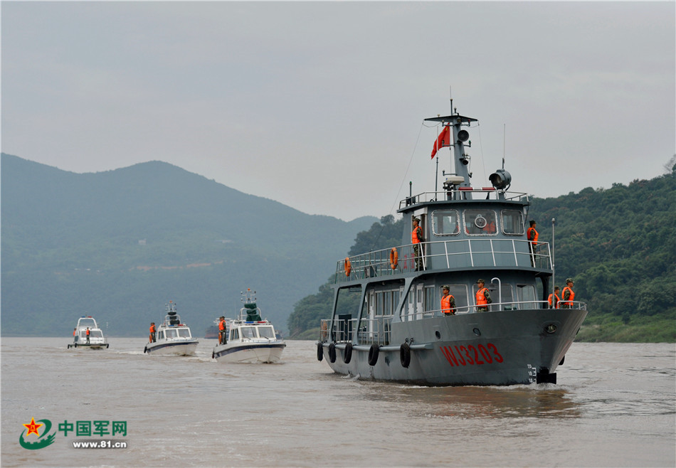 武警重庆总队船艇支队的官兵在长江重庆段水域巡逻。曹峰 摄