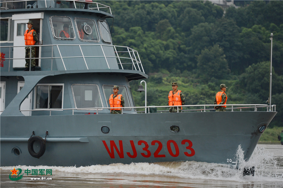 武警重庆总队船艇支队的官兵在长江重庆段水域巡逻。曹峰 摄