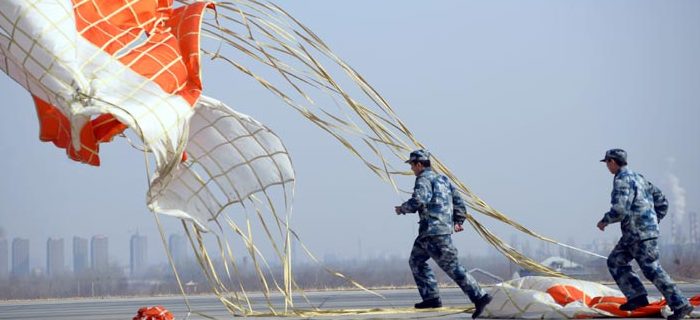 机场捡伞兵体力耐力都要棒 每架战机降落瞬间捡起50斤重阻力伞