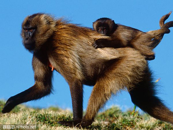 “小狒狒三个月大时就可以骑在妈妈背上了。雌狒狒一生只孕育四或五个孩子,但却投入大量的时间和精力照顾他们——这是‘质量,而非数量’策略,生物学家Chadden Hunter如是说。过去六年中,他用了部分时间来研究埃塞俄比亚的动物。”——摘自《国家地理》2002年11月刊