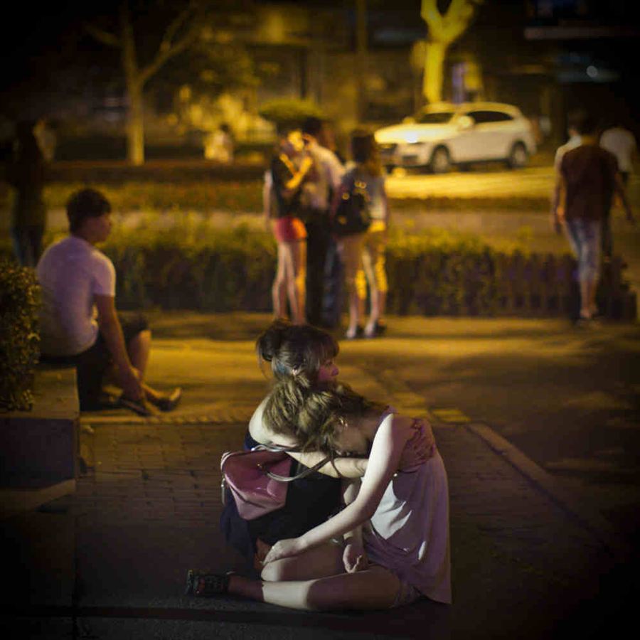 2011年7月2日1时03分,杭州庆春路,刚出夜店喝醉的人。