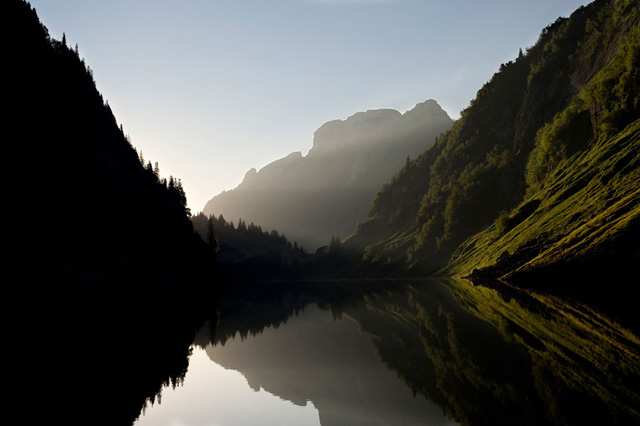 10. 这处地方对我而言很是特别,Fèllensee湖位于狗石山。我知道这听起来挺傻,但既然我和我的狗就在这附近长大,山又叫这个名,我遂选择这一泓平静的湖水作为斯波克(我的狗)最后安息之地,这样它就有了狗世界里最大的墓碑。那天清晨我们为斯波克办了个告别仪式,我拍了这张照片,我们还登上了狗石山,为了记住它,它安息之地的照片如今就挂在我们的厨房里。(摄影:Nino Benninger)