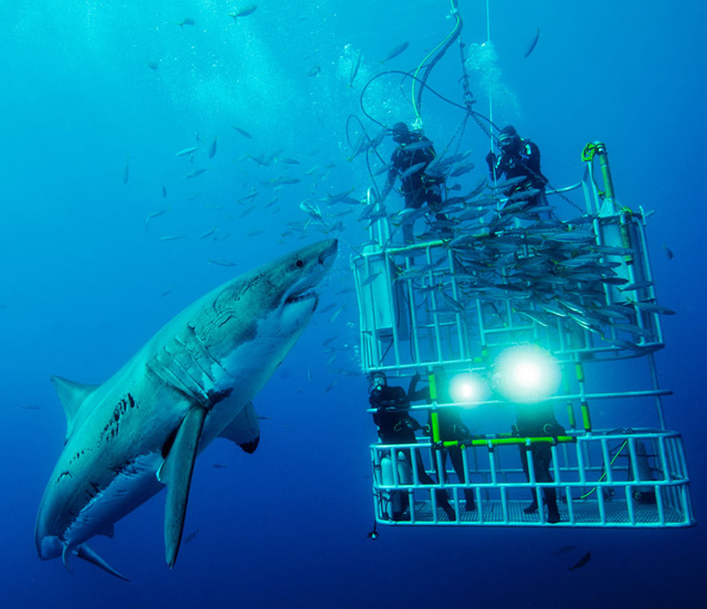 12. 笼中潜水员遭遇一头大白鲨。(摄影:David Litchfield)