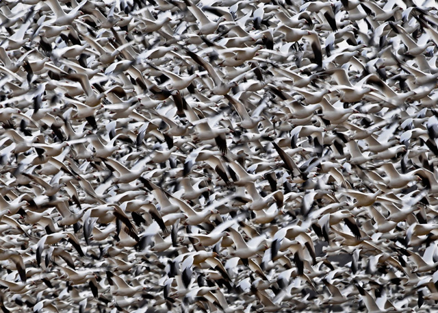 14. 宾夕法尼亚州的克莱恩菲特斯维尔(Kleinfeltersville),飞翔的雪雁。(摄影:Charles Funk)