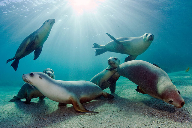 17. 稀有濒危的澳大利亚海狮在南澳霍普金斯岛的浅滩畅游玩耍。(摄影:Michael Patrick O’Neill)