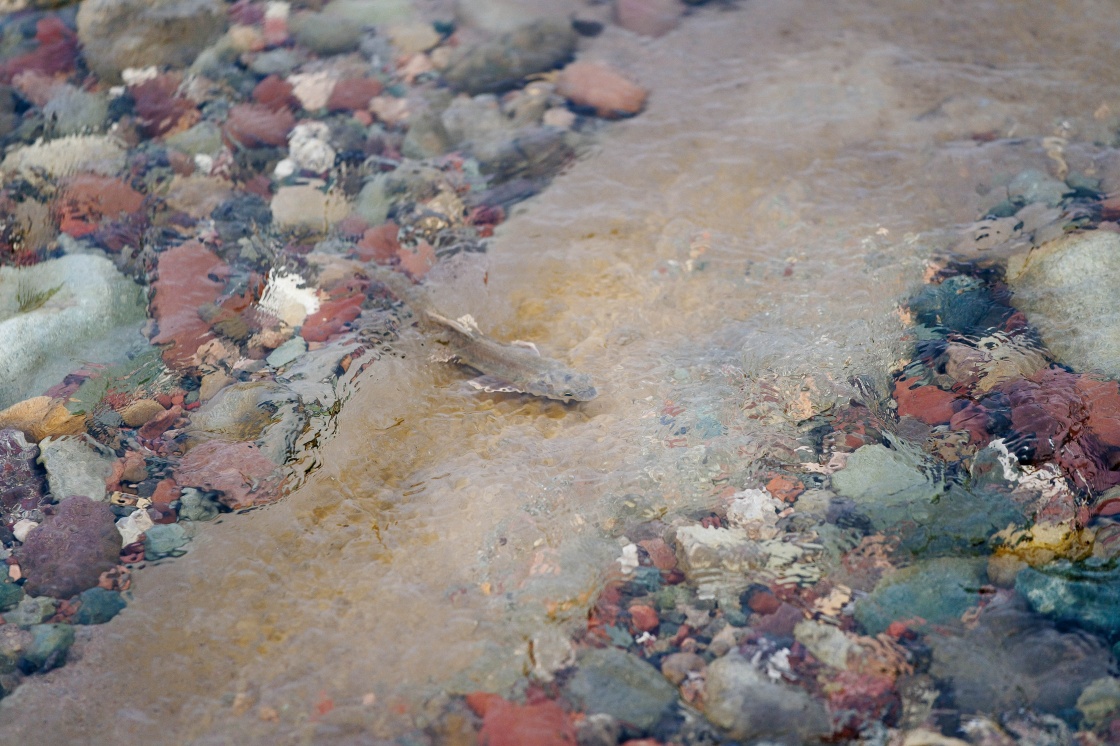 7月6日,在青海省刚察县沙柳河里,一只湟鱼向上洄游。