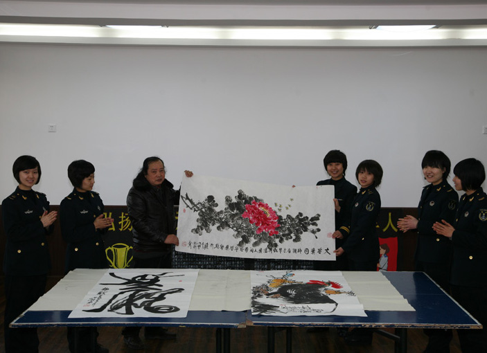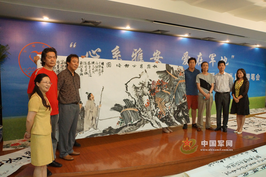 书画家张飙、雷正民、周天寿、李洪海、丁谦、王利军、张禾、万盘根、陆燕生等老师们现场挥毫泼墨,以书画表达对灾区孩子的关爱之情。著名书画家雷正民、周天寿、宗华集体创作的《高贤论道图》,此幅巨作清新典雅,是山水、花鸟与人物的完美结合,体现出古代梅兰竹菊四君子不媚不俗、幽芳清远、风骨逸致气宇轩昂的高雅气质;万盘根、陆燕生、王妞子集体创作的《山静松气远》,作品展示了悠然自得的闲情与惬意,让我们有如身临其景,置身于山野林间,心旷神怡之感;皇族后裔爱新觉罗家族集体创作的大幅八尺整张作品《前程似锦》,画面呈现一片繁荣昌盛、生机盎然的景象;杨志福中将、齐光临少将、张和辉少将联合创作的《吉祥如意》则体现了将军们对生活的美好祝愿,祝大家吉祥如意美意延年。以上等作品由爱心企业家、军旅企业家及爱心人士分别认购,所得善款全部由雅安市精神文明建设办公室用于建设5所雅安市灾区未成年人心理健康辅导中心。