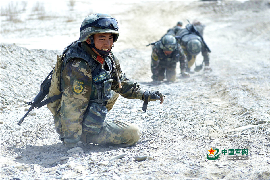 参加15公里长途奔袭的特战队员。