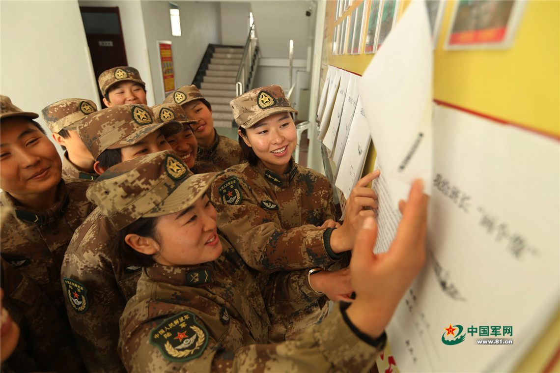 记者到新兵连当天,正赶上她们请旅里的优秀班长赵勃给新兵讲自己的拼搏故事。秦洋说,这是阶段性安排,这个时候,有的新兵训练上去了,就上去了,有没上去的,开始有了气馁的情况,给他们树树榜样,免得他们视线模糊了。
