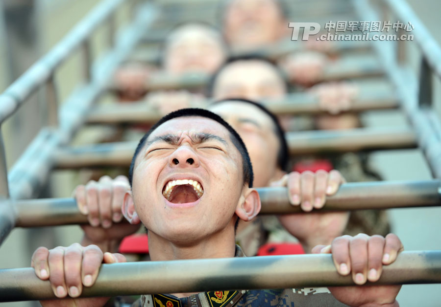 新战士进行器械科目训练。