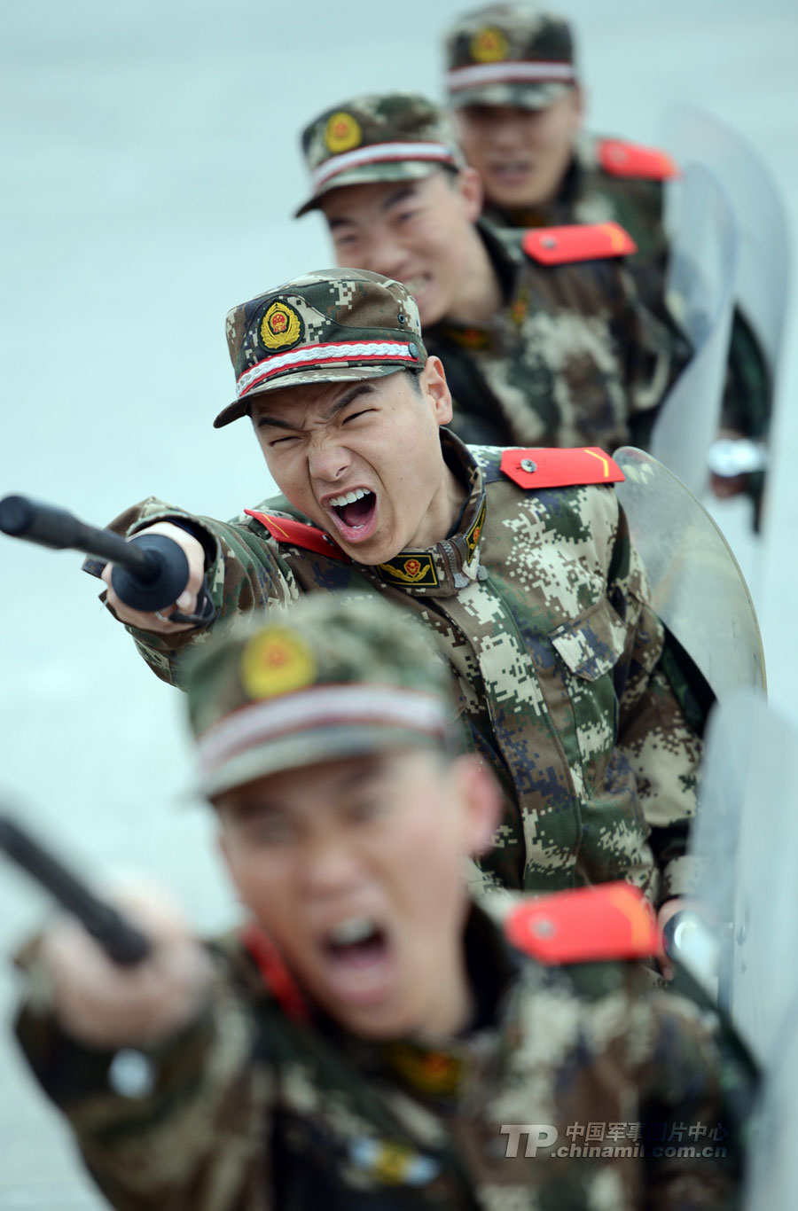 新战士进行警棍盾牌术科目训练。