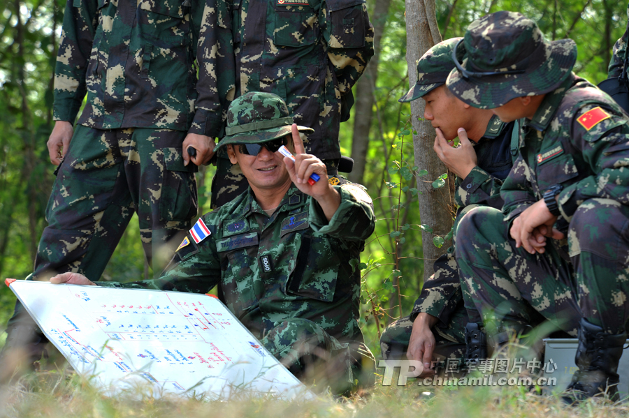 参加联训的中泰两军海军陆战队指挥军官开设两军联合指挥组。
