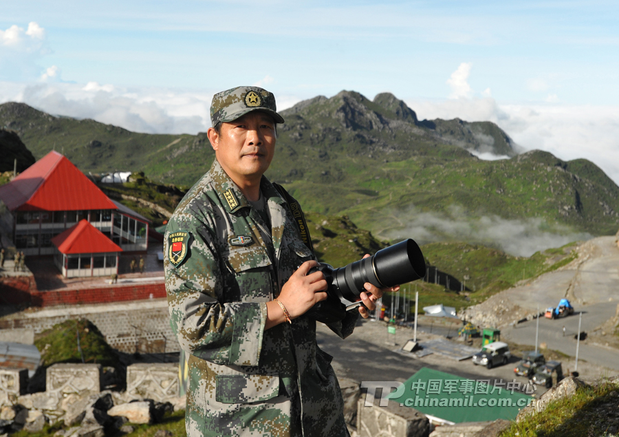 2010年7月,从喀什至林芝,沿高原边防陆路穿行7200余公里。图为记者在乃堆拉哨所采访。