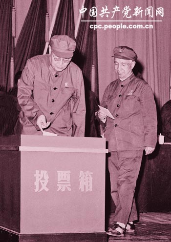 1971年6月,粟裕与叶剑英在军事科学院第一次党代表大会上。
