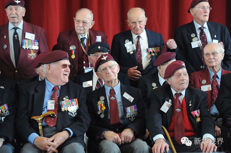 英国二战老兵在法国朗维尔参加诺曼底登陆纪念活动(2014年6月5日摄)。新华社/美联