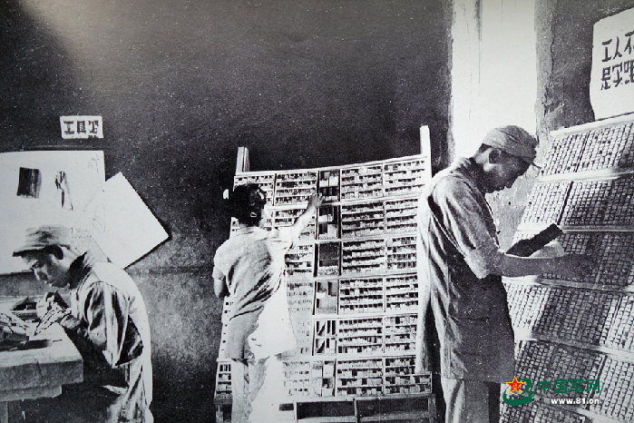 1942年,晋察冀画报社在碾盘沟村时的排字房。(资料照片)