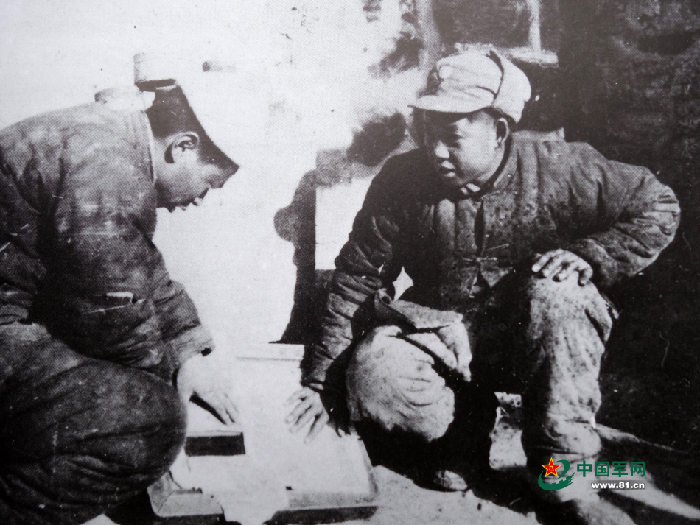 1944年,在阜平洞子沟村晋察冀画报社制版工人用日光晒版。(资料照片)