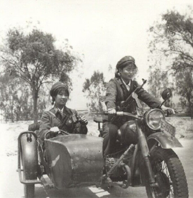 女兵驾摩托。