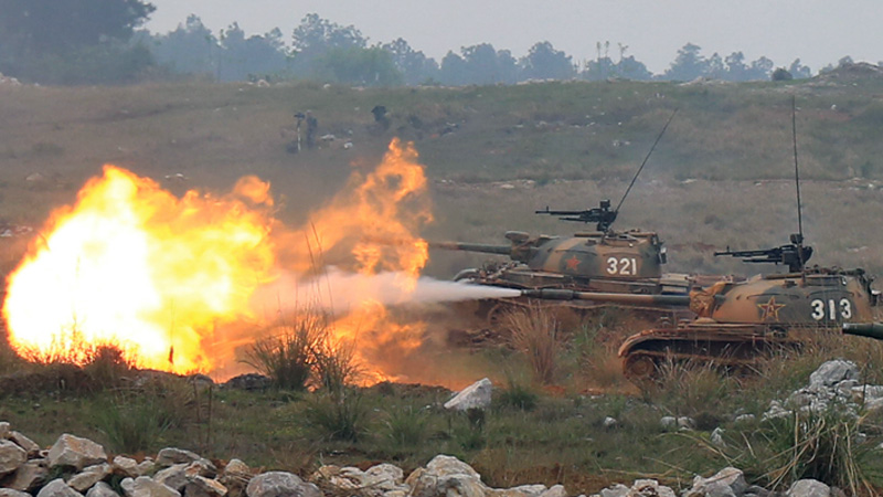 俄军T80坦克雪地中实弹射击 气势汹汹