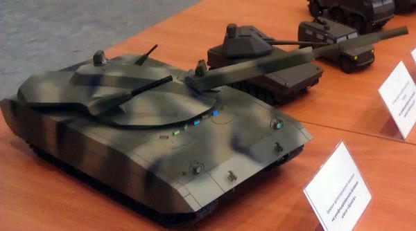 “阿玛塔”坦克最初公开的模型,看起来具有雷达隐身设计,但实际露面的“阿玛塔”并没有如此“科幻”