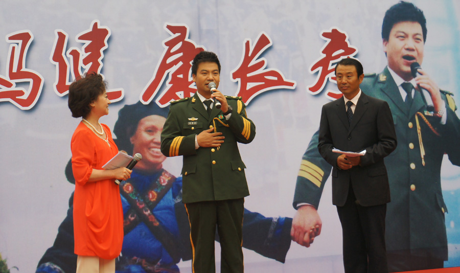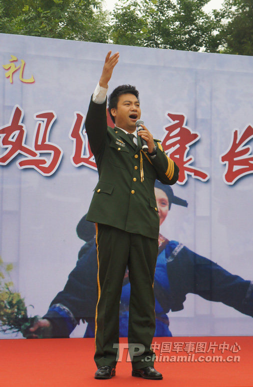 军旅歌手彭高平在现场深情演唱 (曹磊摄)